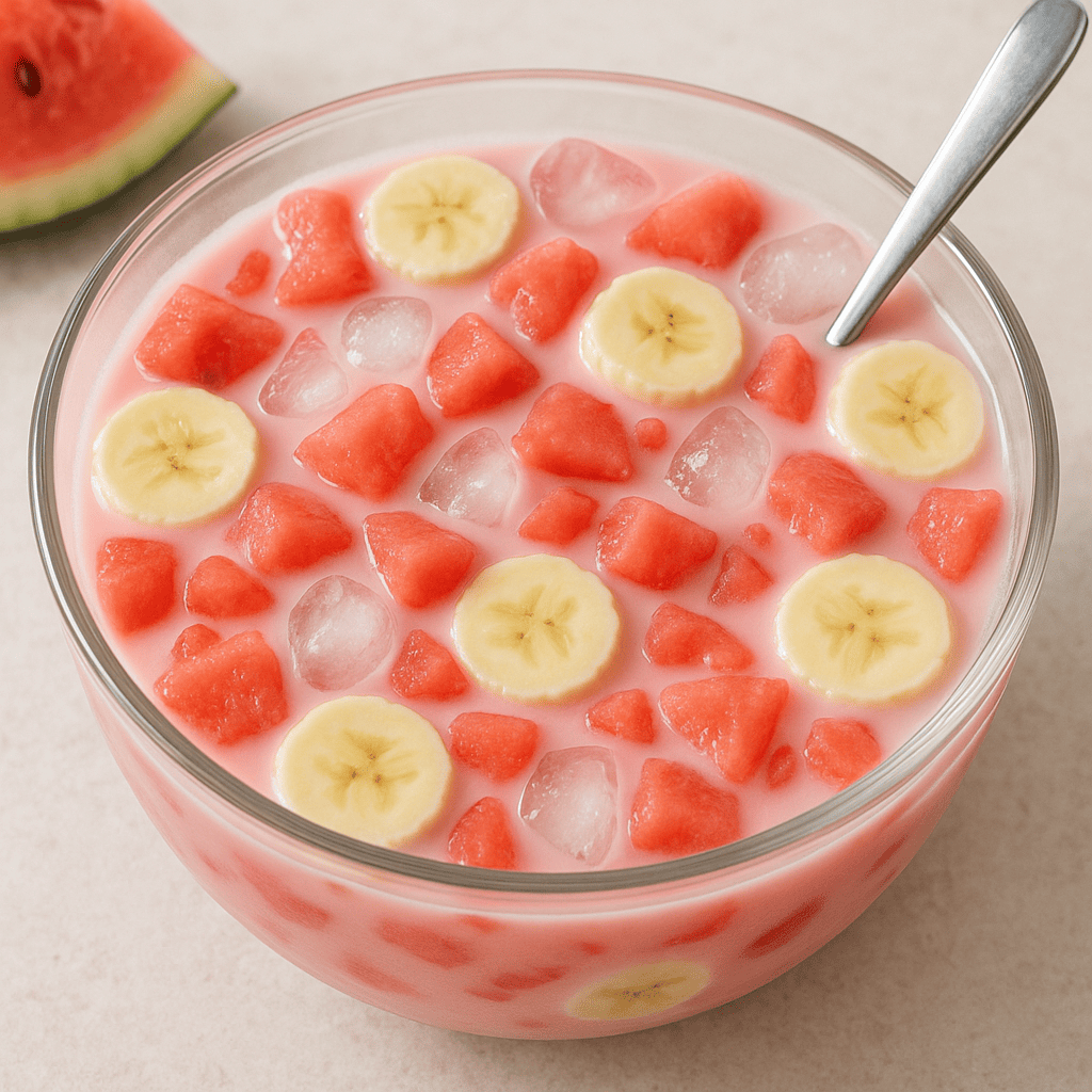 여기에 수박, 바나나, 얼음을 넣고 차게해서 드시면 됩니다.